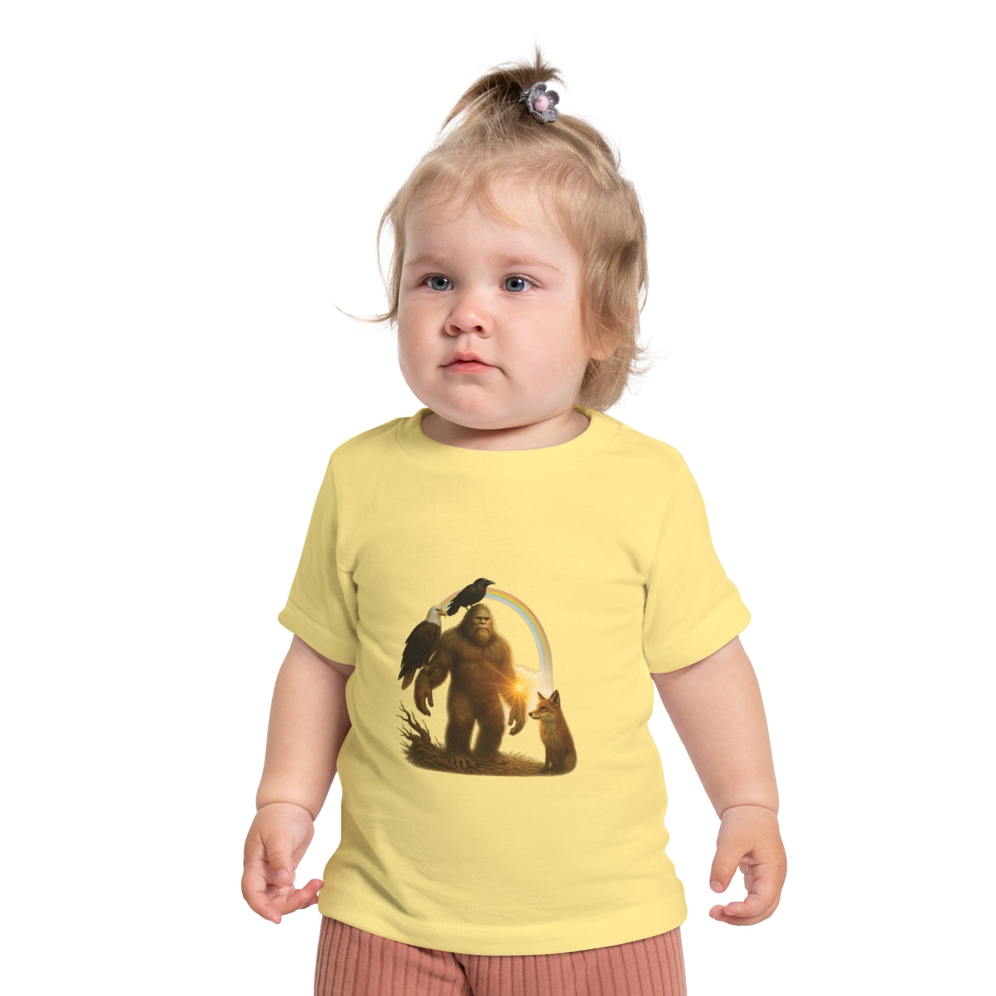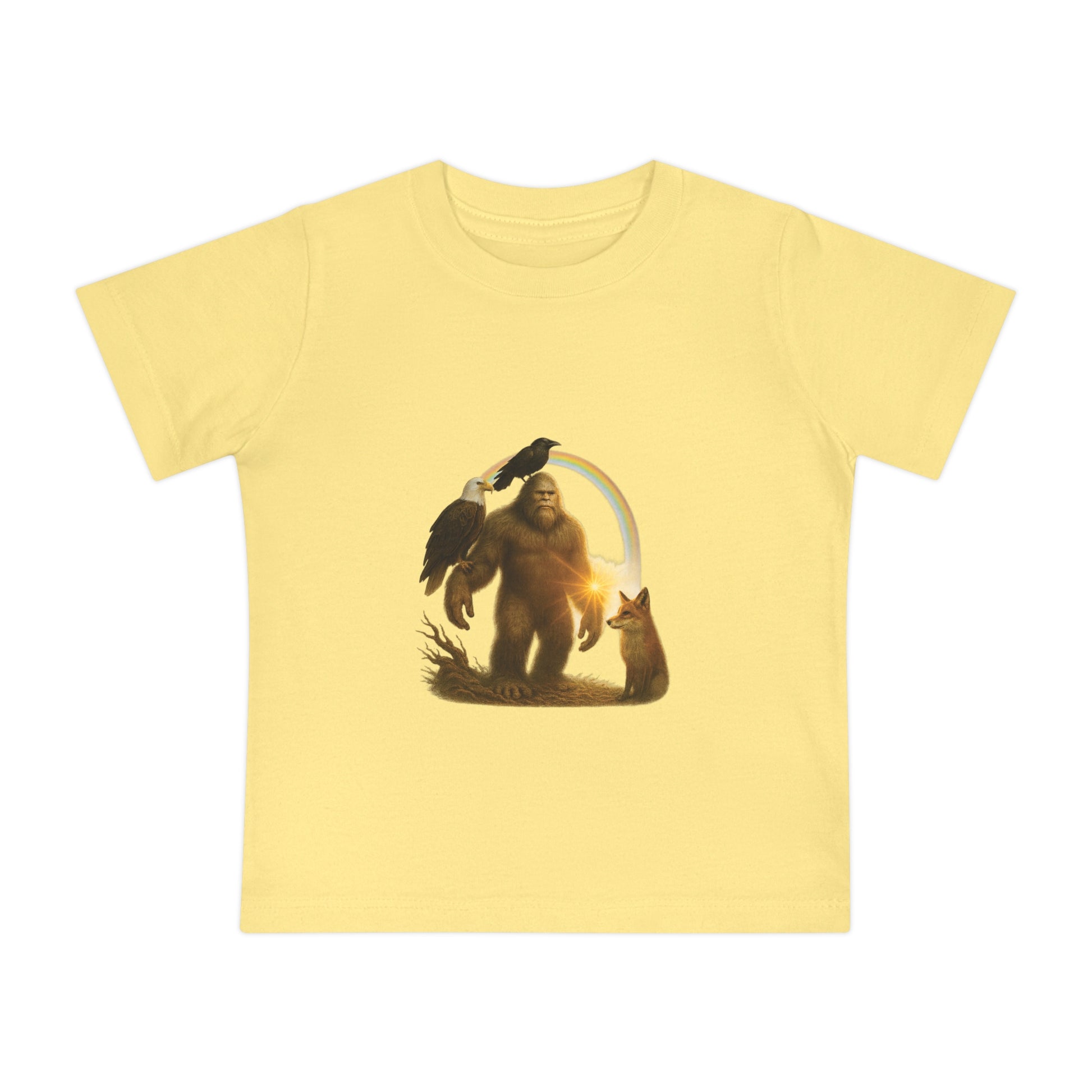 Bigfoot & Friends Baby T-Shirt — Cute Sasquatch, Horse & Raven Infant Tee