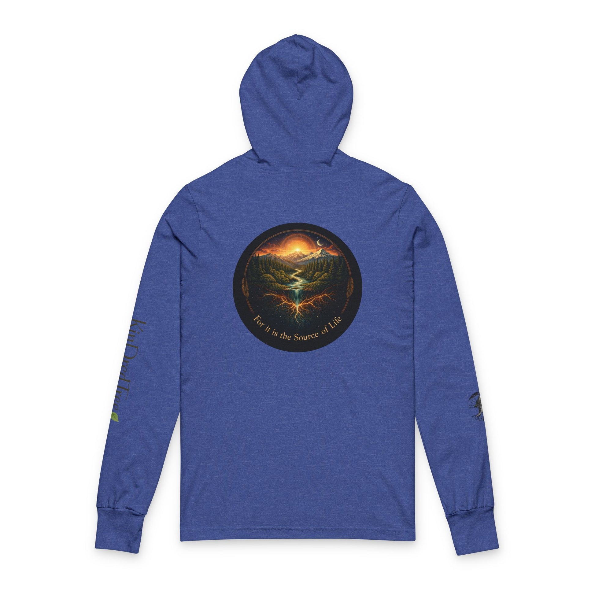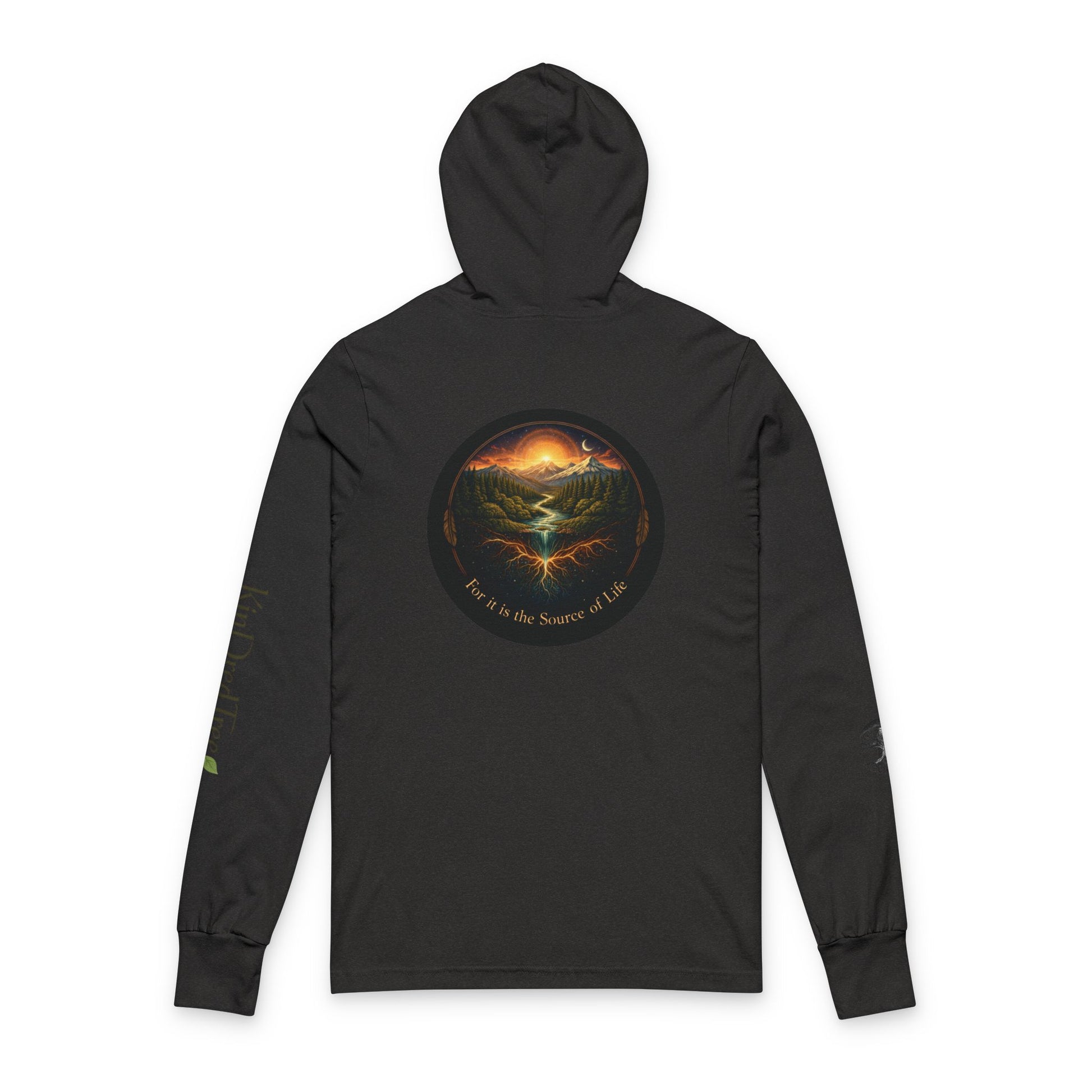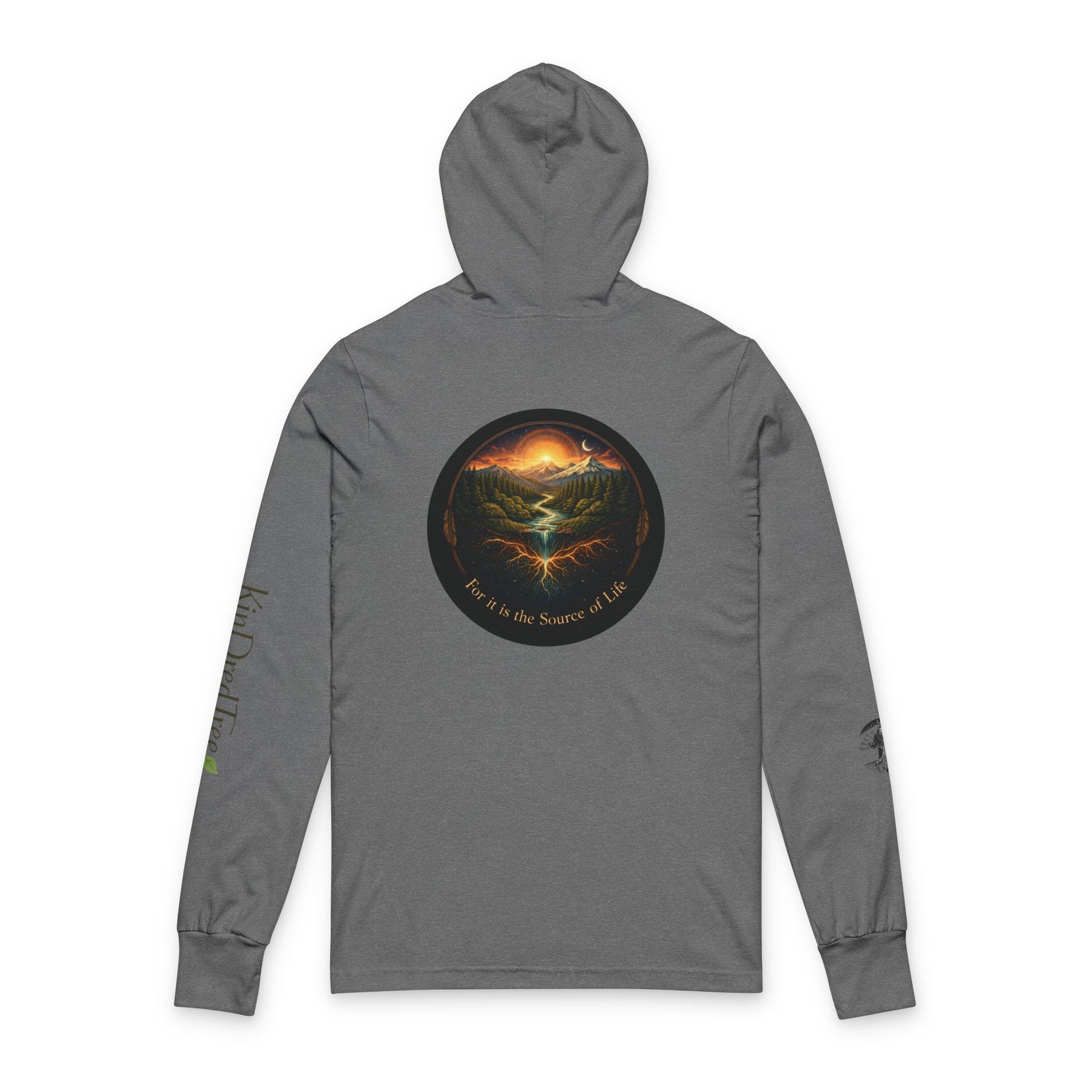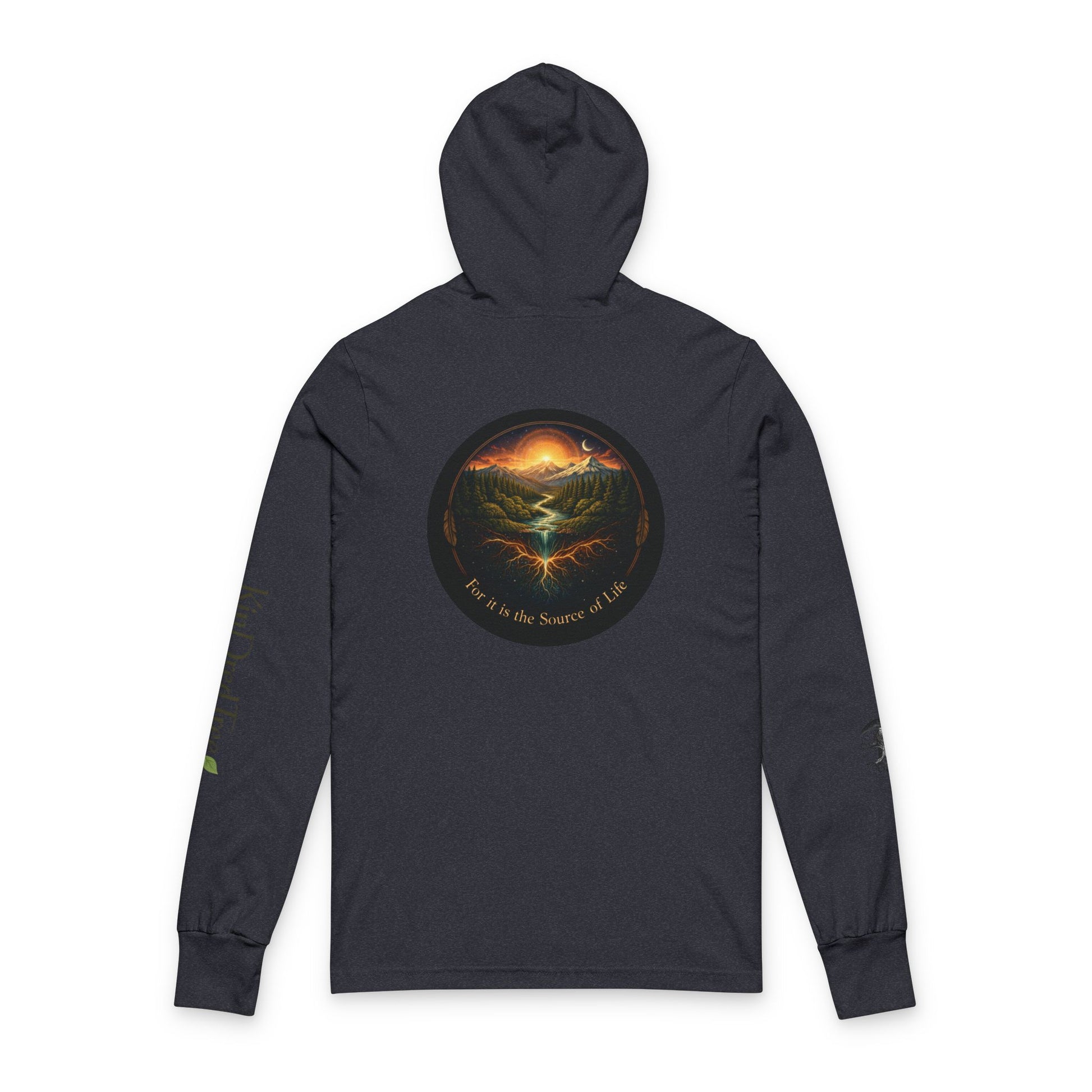 Respect the Land, Sacred Sasquatch Guardian Emblem Hooded Long Sleeve Tee