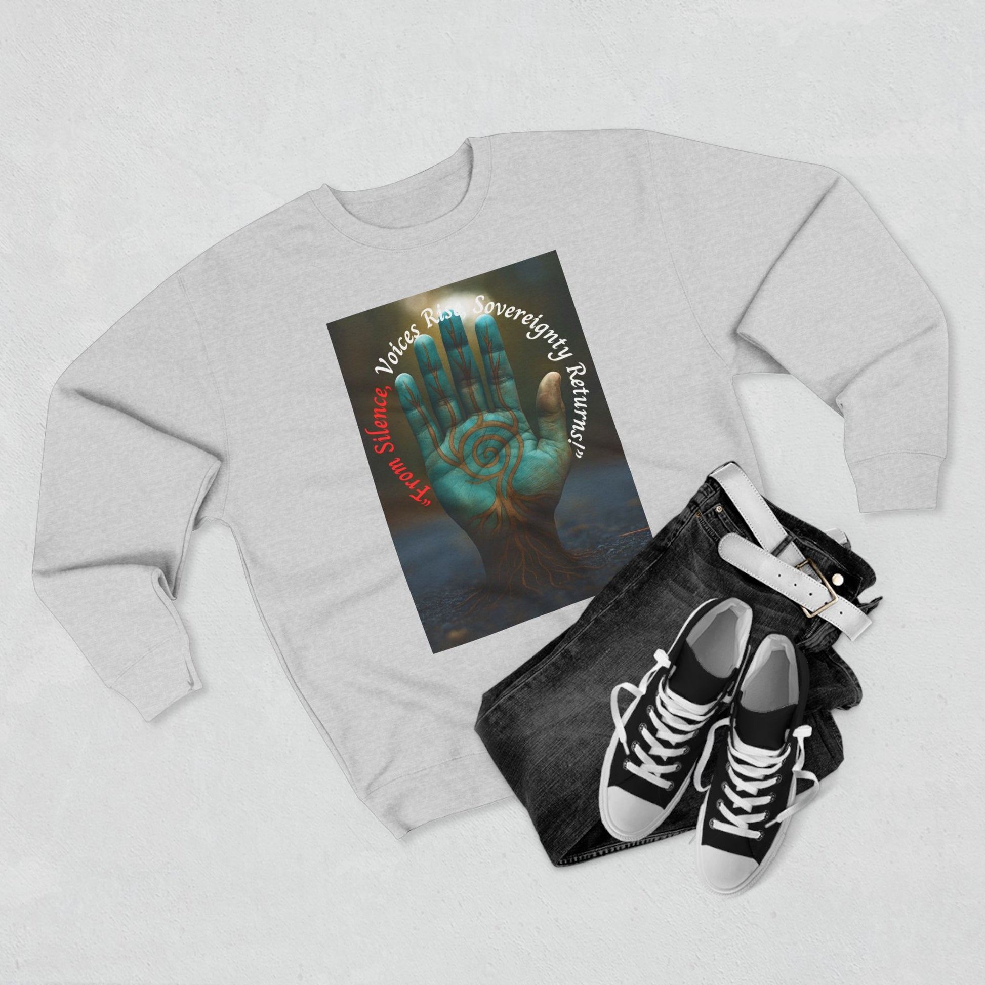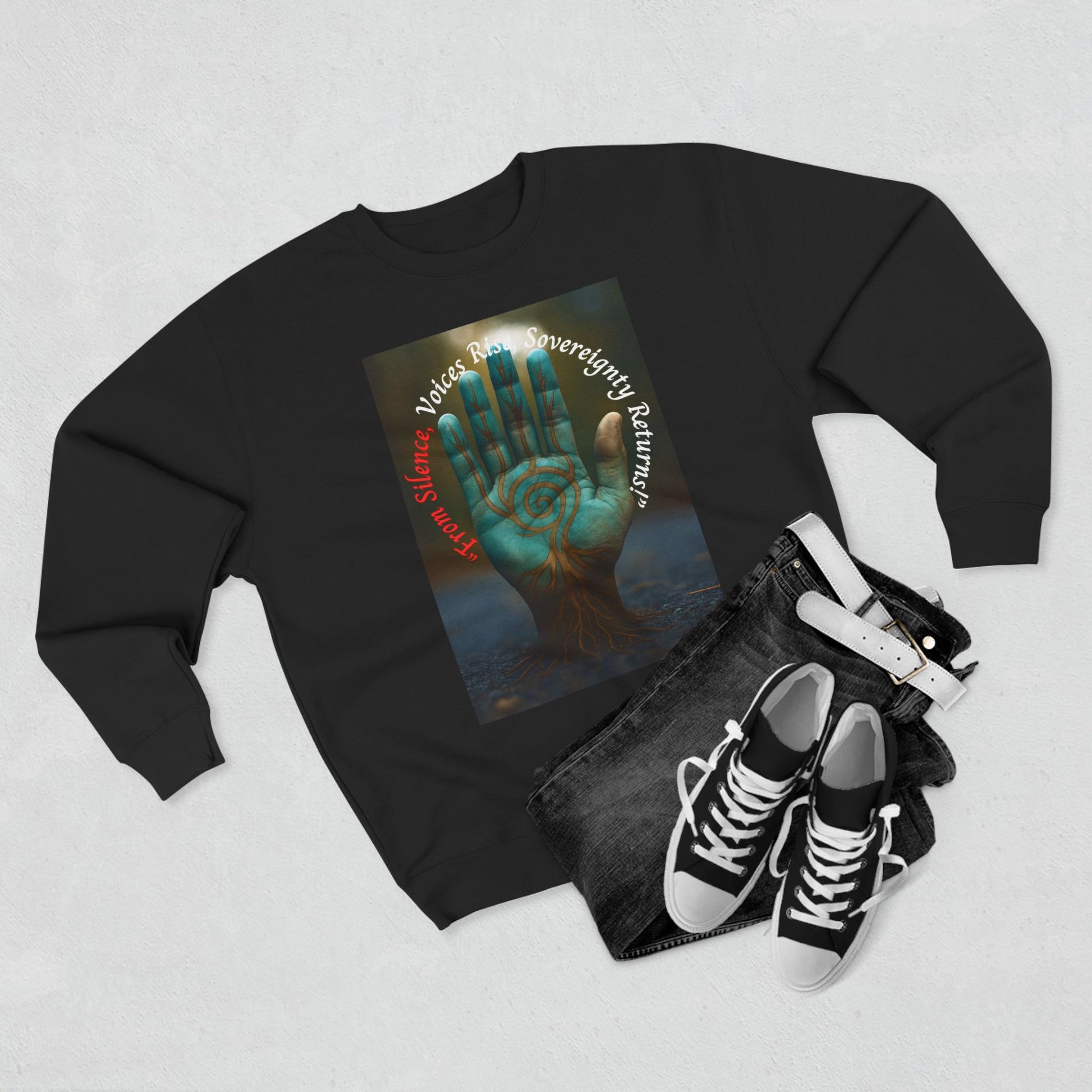 Sovereignty Returns Crewneck Sweatshirt — "From Silence, Voices Rise"